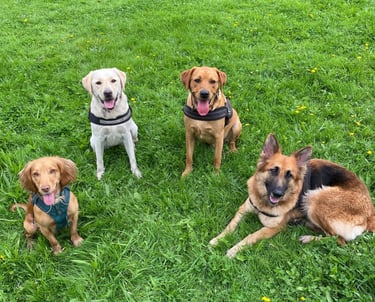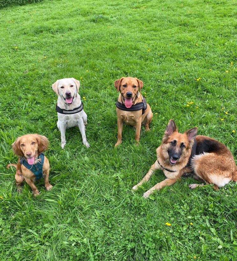 Before becoming a trainer, I spent years working hands-on with high-energy breeds through my countryside group dog walks. These off-lead walks still run daily and give me a deep understanding of canine body language, arousal patterns, social behaviour, and what dogs truly need to thrive. This experience strengthens my training approach, allowing me to help dogs not just learn better – but feel better.